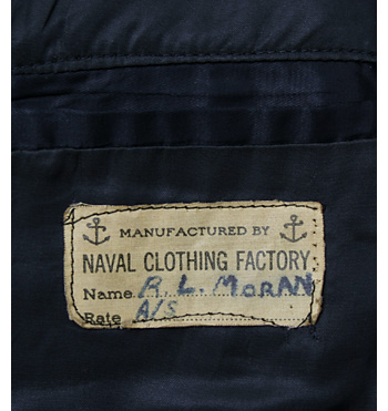 ・コントラクトラベル:右内サイドポケット上に状態良く残存。ラベルのスタイルは40年代に多く見られる“NAVAL CLOTHING FACTORY”の文字がプリントされたタイプ