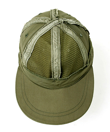 NAM戦時、一般にベースボールキャップと呼称されるODカラーのホットウェザーキャップ。正面内サイド全面に芯材が縫い込まれた初期仕様タイプ。実物USED放出品。