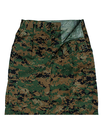 2002年より支給が開始された米海兵隊現用・最新カモ MARPAT(ピクセル・カモ)の野戦パンツ。ウッドランドタイプ。実物未使用放出品。
