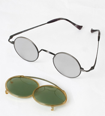 片眼43mm径程度のクラシックな形式のメガネ(ジョン・レノン型)が使い良いようです。