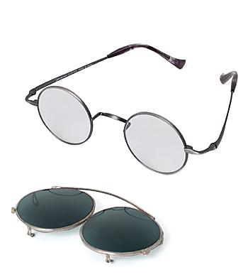 片眼43mm径程度のクラシックな形式のメガネ(ジョン・レノン型)が使い良いようです。