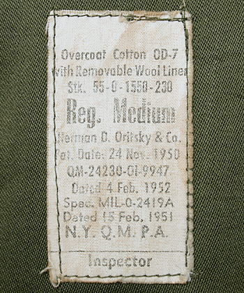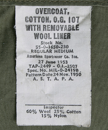 ■制式名称:OVERCOAT, COTTON, O. G. 107 WITH REMOVABLE LINER