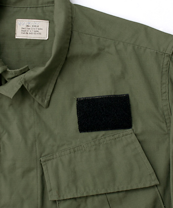・左胸部:胸ポケットフラップ直上に7.5 x 5.0 cm(W x H)のベルクロ(ループ・サイド/雌面)の縫い付けあり/画像参照