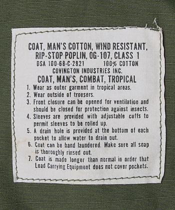 ■制式名称:COAT, MAN'S COTTON, WIND RESISTANT, RIP-STOP POPLIN, OG-107, CLASS 1