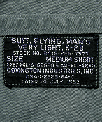 1960年代を代表するUSAFのフライング・スーツ K-2BのNAM戦・中期型(MIL-C-6265D & AMEND.2)。実物極上放出品。