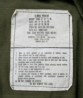 ■制式名称:COAT, COLD WEATHER, FIELD, OG-107
