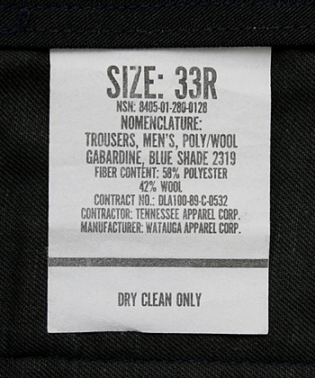 ■制式名称:TROUSERS, MEN'S, POLY/WOOL GABARDINE, BLUE SHADE 2319