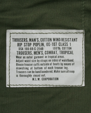 ■制式名称:TROUSERS, MAN'S, COTTON WIND RESISTANT RIP-STOP POPLIN, OG-107 CLASS 1