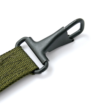 ■ベルトへの装着:前後ストラップ先端のフック金具(該当画像参照)によりベルト側(アイレットに)装着。