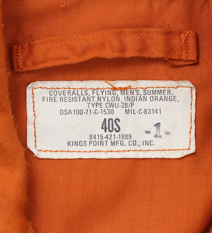 ■正式名称:COVERALLS, FLYING, MEN'S, SUMMER, FIRE RESISTANT NYLON, INDIAN ORANGE, TYPE CWU-28/P