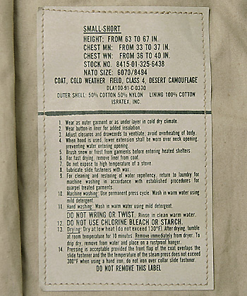■制式名称:COAT, COLD WEATHER FIELD, CLASS 4, DESERT CAMOUFLAGE