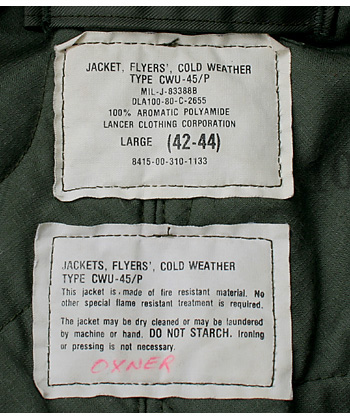 ■制式名称:JACKET, FLYERS', COLD WEATHER, TYPE CWU-45/P