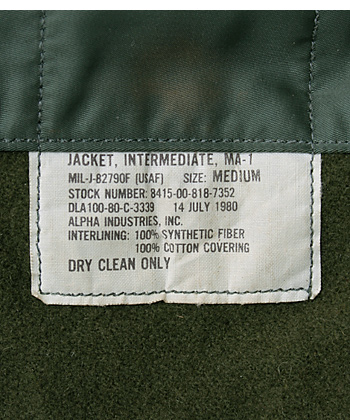 ■制式名称:JACKET, INTERMEDIATE, MA-1