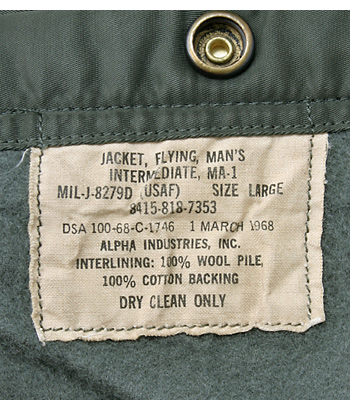 ■制式名称:JACKET, FLYING, MAN'S, INTERMEDIATE, MA-1
