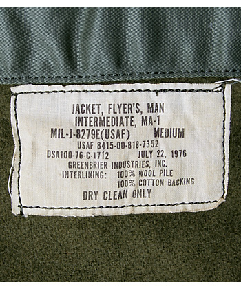 ■制式名称:JACKET, FLYER'S, MAN INTERMEDIATE, MA-1