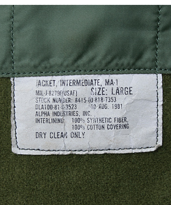 USAF(米空軍) MA-1 フライト/グランドクルージャケット/MIL-J-8279F/DLA-81年/サイズ:L/実物・極上