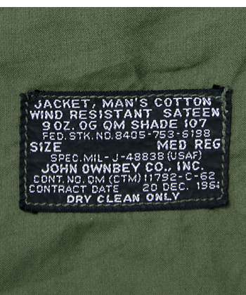 ■制式名称:JACKET, MAN'S COTTON WIND RESISTANT SATEEN 9 OZ. OG QM SHADE 107