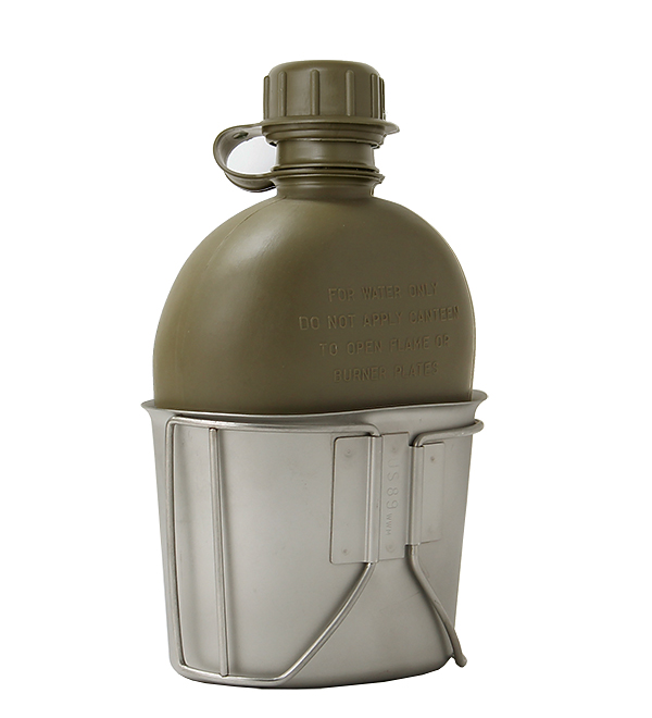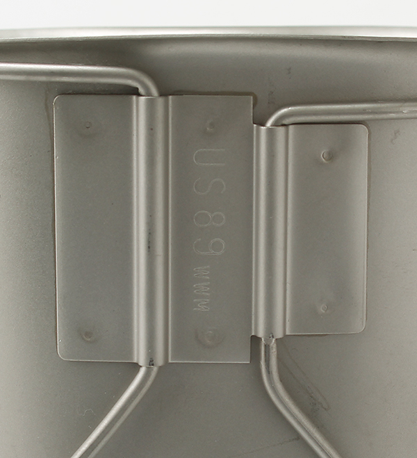 取っ手の形状に若干の仕様変更はあったが、1910年採用時より米軍における『Canteen Cup(水飲み)』の考え方に変更は無く、水筒の下部を『カップ』に差し込み水筒カバーに収め携帯される『Canteen Cup』は、水を汲み飲む用途だけではなく、水を煮沸し携帯食料を温める小鍋代わりにも使用される優れものだ。1989年製、実物未使用! !