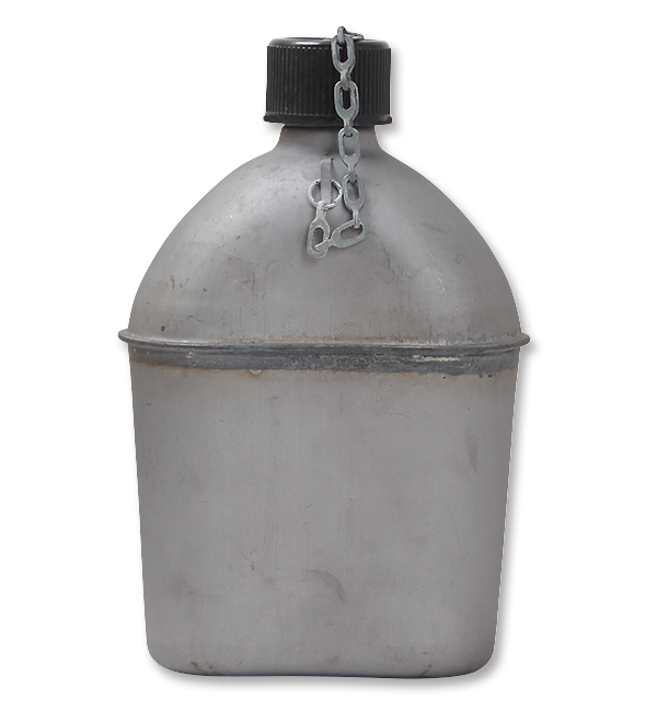 大戦時米軍において採用、支給されていた金属製のキャンティーン(水筒)。キャップ、チェーン、コルク全て大戦時のオリジナル。実物未使用! !