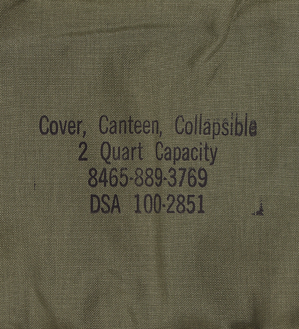 NAM戦時、ジャングル戦を主目的に開発された2QT Collapsible(折りたたみ可能型) キャンティーン用、初期型(1965年採用)ナイロンカバー。手の込んだ作りだが、短期間の使用に終わる。実物未使用、放出品! !
