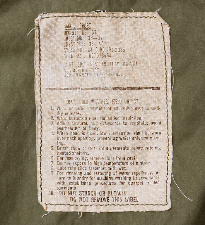 ■制式名称:COAT, COLD WEATHER, FIELD , OG-107