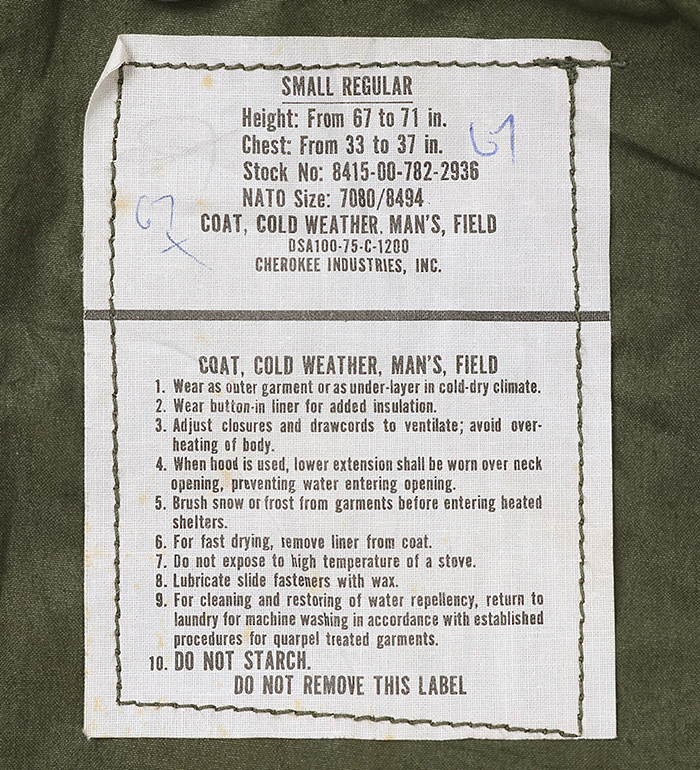 ■制式名称:COAT, COLD WEATHER, MEN'S, FIELD , OG-107