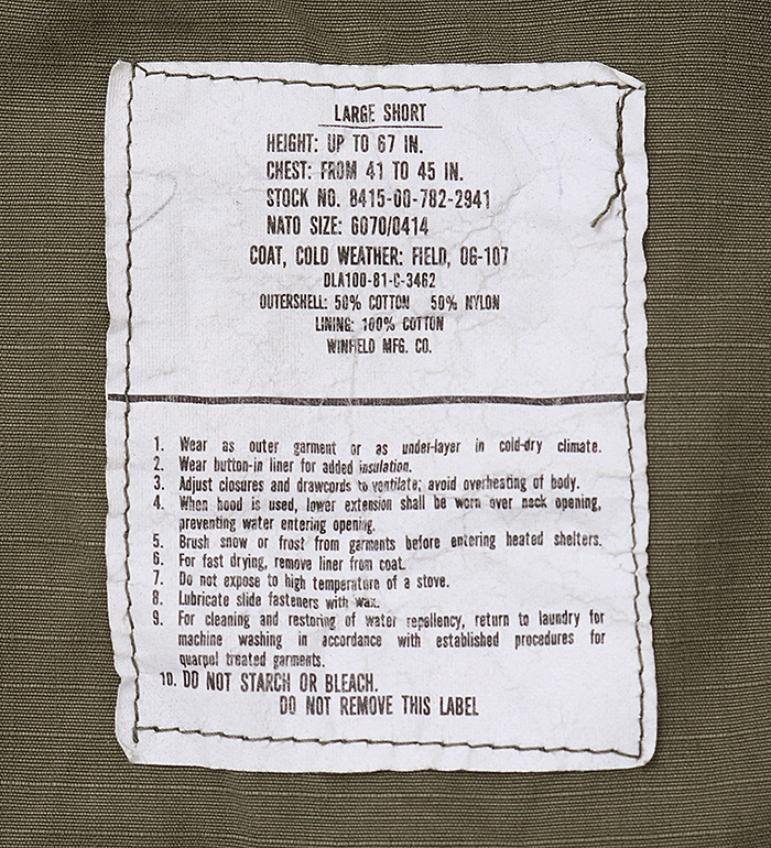 ■制式名称:COAT, COLD WEATHER, MEN'S, FIELD , OG-107