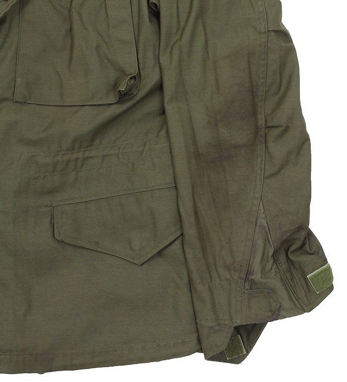 ・両袖、袖口より約25cm若干の油汚れあり。洗濯でほぼ落ちると判断した結果『準未使用』という極めて稀なコンディションに付き未洗濯状態にて販売させて頂きます。 注) 画像参照