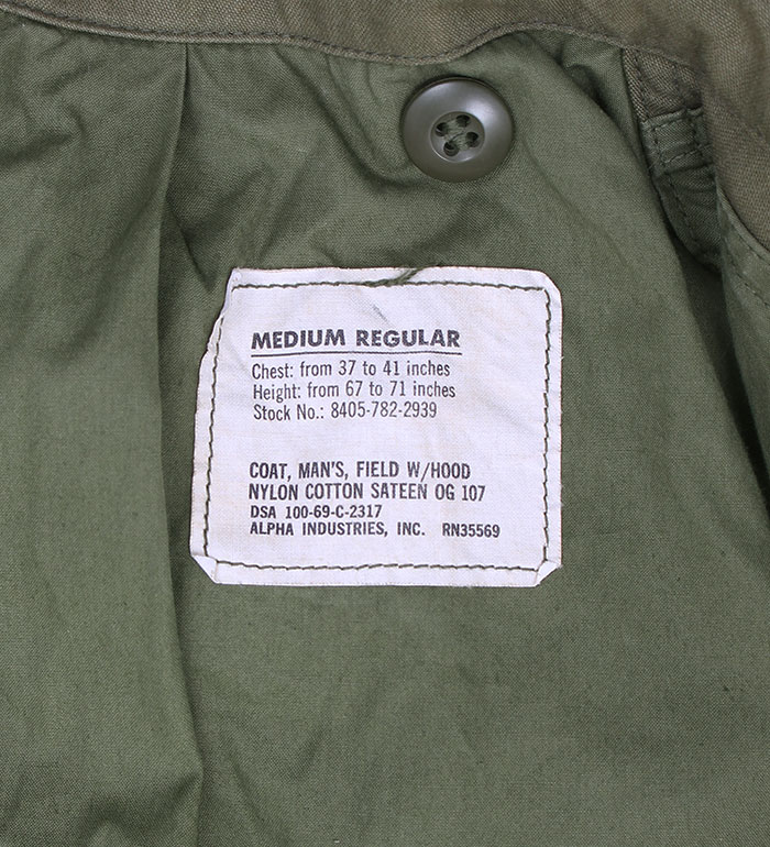 US(米軍) M65 フィールドジャケット・2nd Model/アルミジッパー/ALPHA社/DSA-69/実物・極上