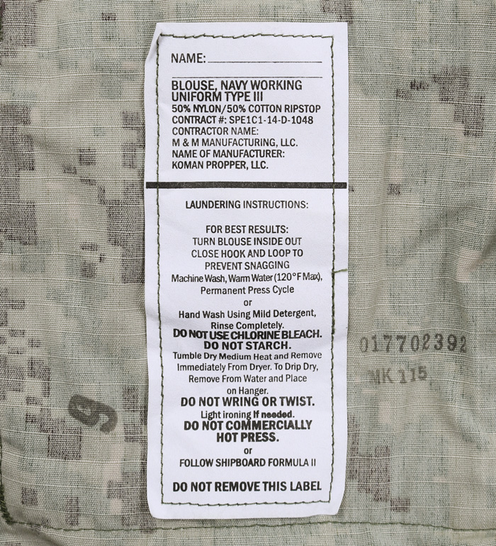 ■制式名称:BLOUSE, NAVY WORKING UNIFORM TYPE III