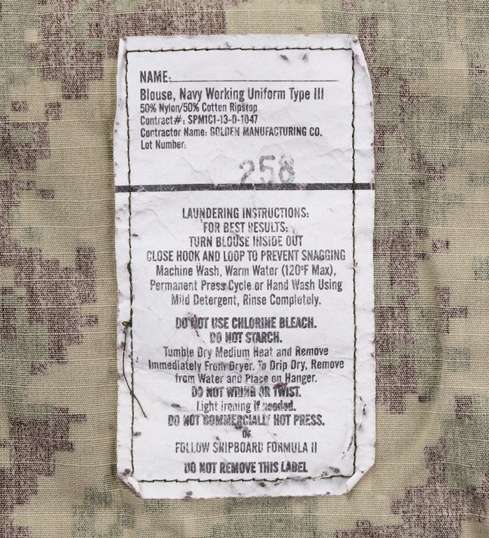 ■制式名称:BLOUSE, NAVY WORKING UNIFORM TYPE III