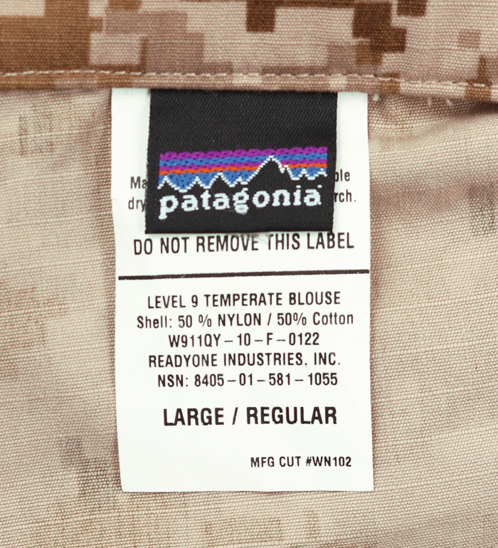 アウトドアメーカーPATAGONIAが米海軍に納入したLEVEL 9 TEMPERATE(温帯地用) BLOUS、デザート(AOR1)迷彩。米海軍地上作戦部隊及びSEALs(米海軍特殊戦部隊)に使用されたことで知られる。実物未使用、米海軍放出品! !