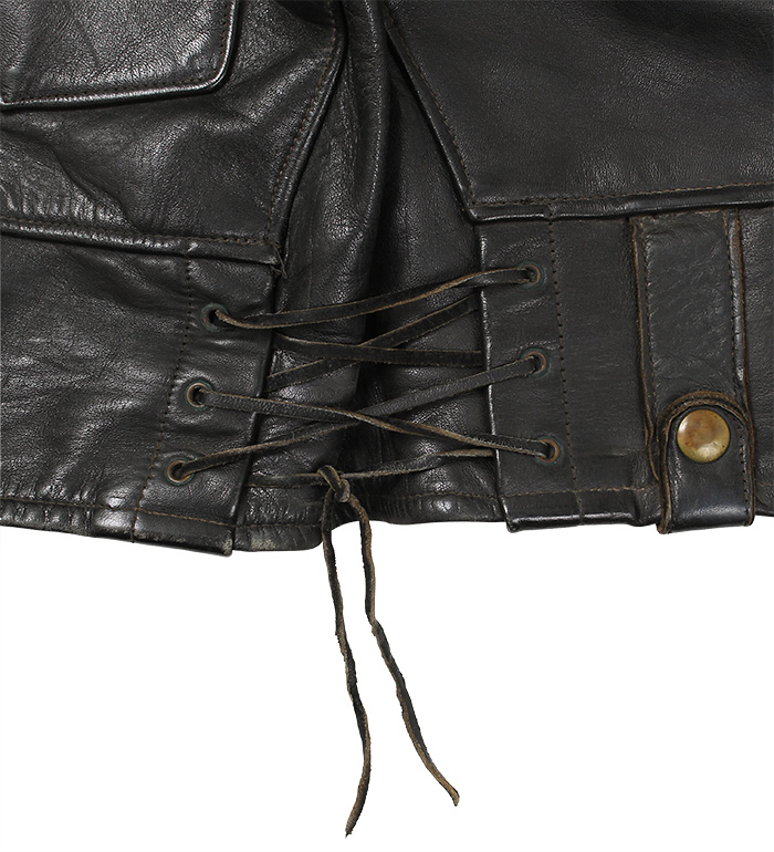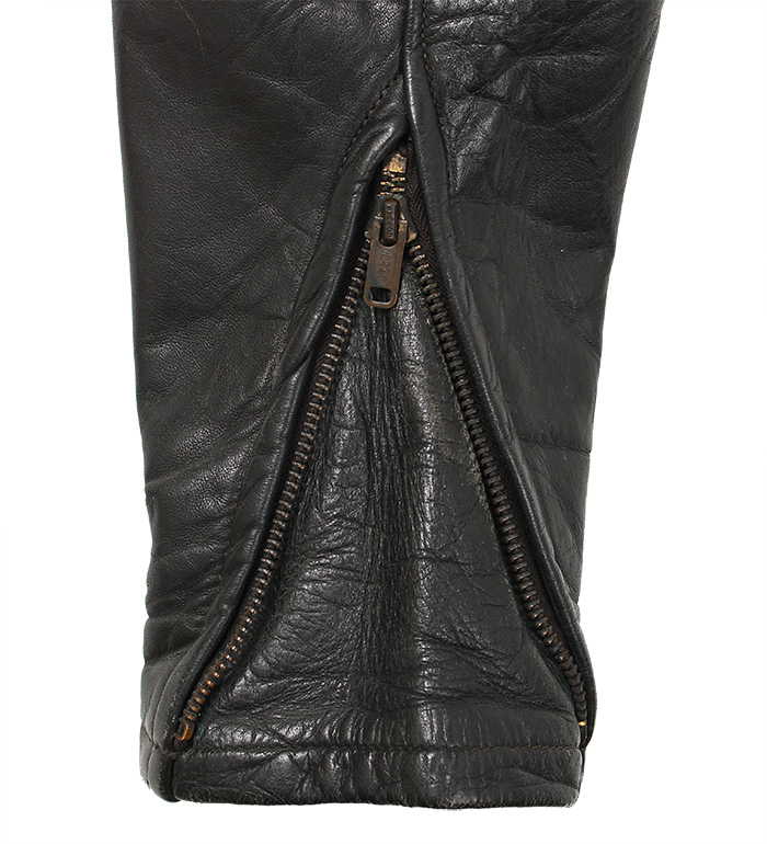 40-50年代初期に製造されたライダージャケット(馬革)としては極めて良好なコンディションの物ですが、製造より60年を超える革衣料です。使用に差し支え無い範囲においての経年変化、色落ち、汚れ、小キズ、スレ、小リペア痕、金属部の変色、僅かなサビ、等があること、予めのご了承お願いいたします。