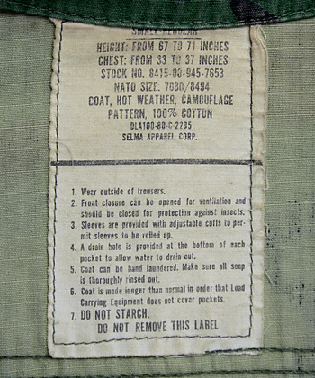 ■制式名称:COAT, HOT WEATHER, CAMOUFLAGE PATTERN, 100% COTTON