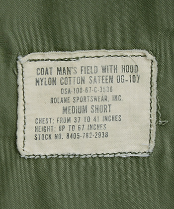 ■制式名称:COAT, MAN'S, FIELD W/HOOD NYLON COTTON, SATEEN, OG 107