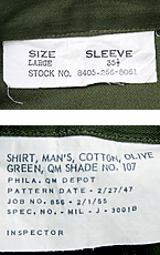 ■制式名称:SHIRTS, MAN'S, COTTON, OLIVE GREEN. QM SHADE NO.107