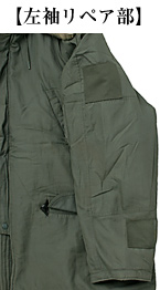 ●左袖部:背面肩部付近に約10 x 9 cm(W x H)、背面肩部付近に約7 x 7 cm(W x H)のパッチ(あて布)リペア箇所あり。/左下画像参照