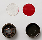 ■付属品:スペア球(電池挿入キャップ内)とスペアレンズ2種(レッドと表面突起模様のあるクリアーが本体ボトムキャップ内)が付属。/右下画像参照