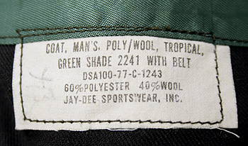 ■制式名称:COAT, MAN'S, POLY/WOOL, TROPICAL, GREEN SHADE 2241 WITH BELT