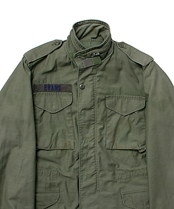 米軍が開発した数多くのミリタリー・アイテムの中にあっても最高傑作の一つ、“M65 Field Jacket”その4th Model/フロント(ブラス・ジッパー)、襟裏(プラスティック・ジッパー)。