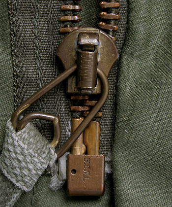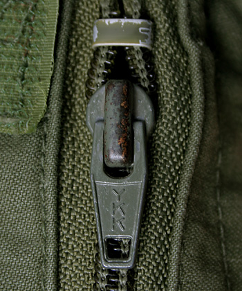 1985年頃のコントラクトの物から、ジッパーはブラス(真鍮)素材の物よりプラスティック素材の物に除々に仕様変更され、ここに紹介のモデルは変更の初期に多く見られるフロントがブラス、襟裏にプラスティックのジッパーが用いられた複合タイプ。実物USED放出品!!