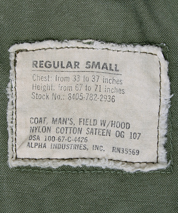 ■制式名称:COAT, MAN'S, FIELD W/HOOD NYLON COTTON, SATEEN, OG 107