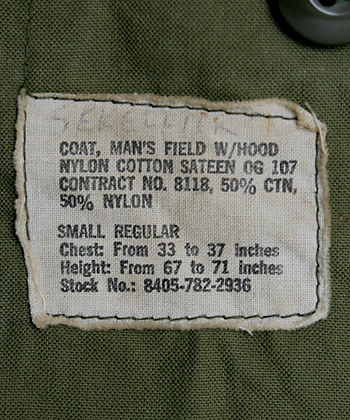 ■制式名称:COAT, MAN'S FIELD W/HOOD NYLON COTTON SATEEN OG 107