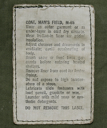 ●取り扱い説明ラベル:右裾ポケット裏にあり。