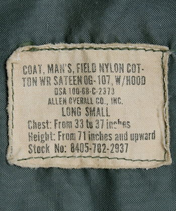 ■制式名称:COAT, MAN'S, FIELD NYLON COTTON WR SATEEN OG-107 W/HOOD