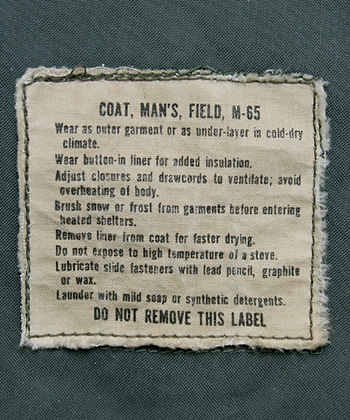 ●取り扱い説明ラベル:右裾ポケットの裏側ににあり/該当画像参照