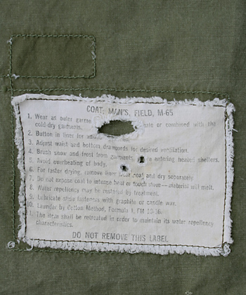 M65 Field Jacketが採用された年1965年コントラクトの製造ロットの物にはショルダー・ループが省略されていた。製造数も極めて少ない希少Model ! ! 実物USED放出品。