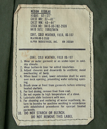 ■制式名称:COAT, COLD WEATHER, FIELD, OG-107