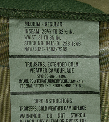 ■制式名称:TROUSERS, COLD WEATHER, CAMOUFLAGE