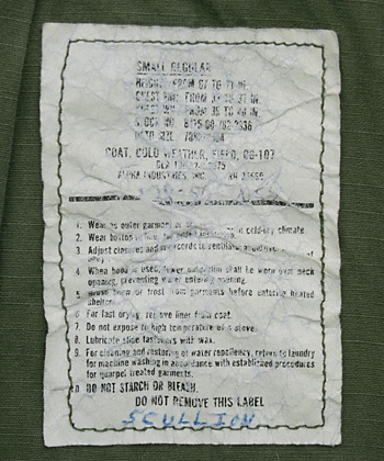 ■制式名称:COAT, COLD WEATHER, MAN'S, FIELD, OG-107